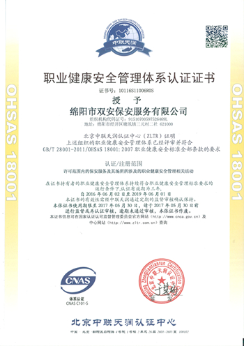 職業(yè)健康安全管理體系認(rèn)證證書(shū)