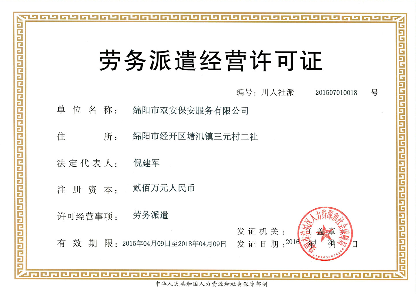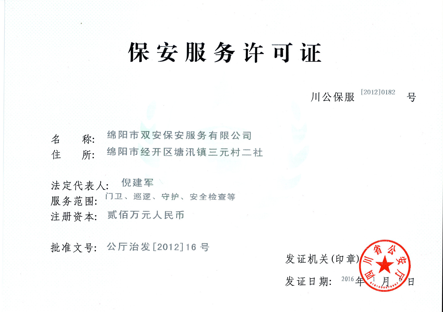 保安服務(wù)許可證正本