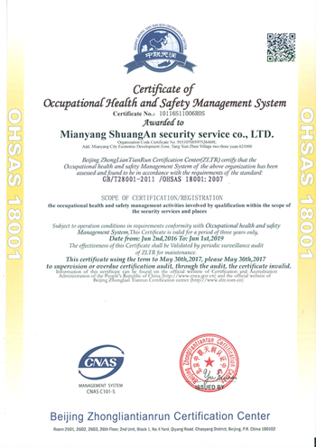 英文版職業(yè)健康安全管理體系認(rèn)證證書